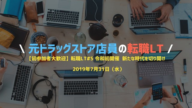 \ 元ドラッグストア店員の転職LT / 【初参加者大歓迎】転職LT#5 令和初開催 新たな時代を切り開け 2019年7月31日(水)