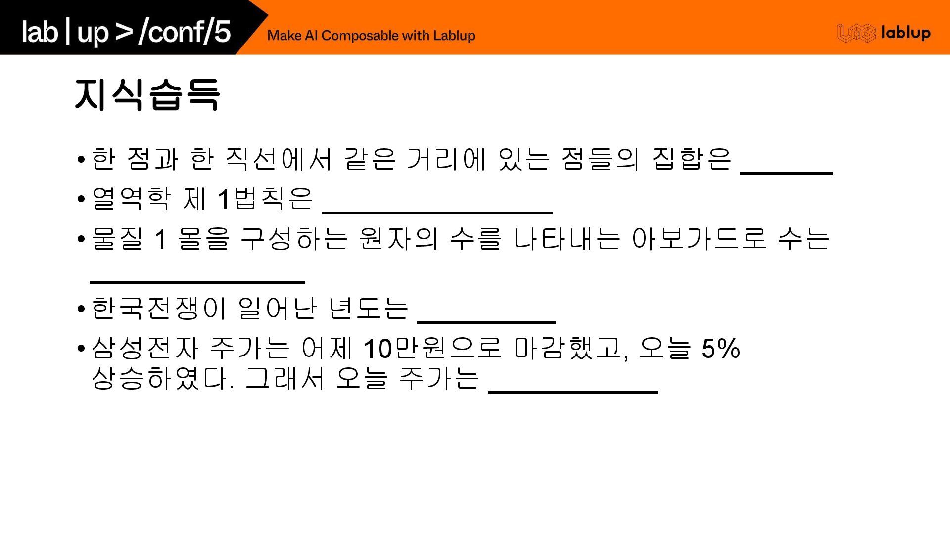 ______ •열역학 제 1법칙은 _______________ •물질 1 몰을 구성하는 원자의 수를 나타내는 아보가드로 수는 ______________ •한국전쟁이 일어난 년도는 _________ •삼성전자 주가는 어제 10만원으로 마감했고, 오늘 5% 상승하였다. 그래서 오늘 주가는 ___________