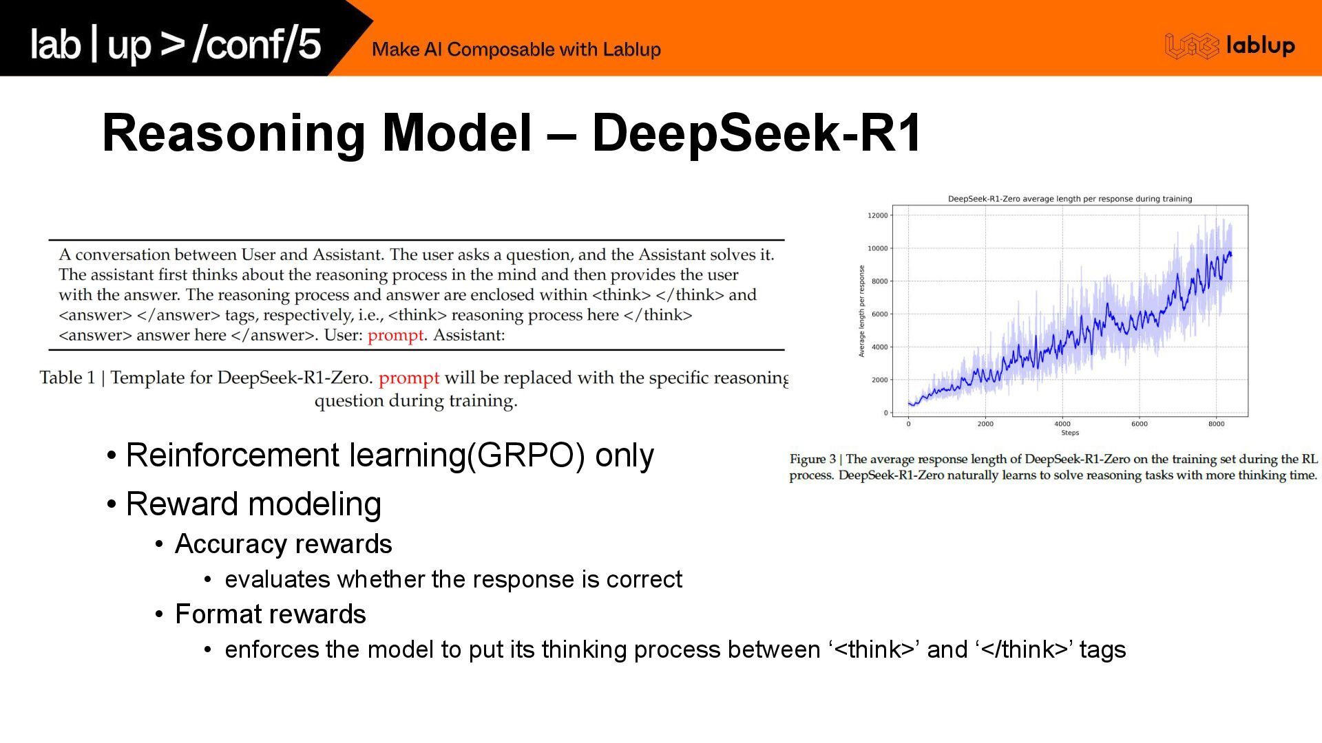 modeling • Accuracy rewards • evaluates whether the response is correct • Format rewards • enforces the model to put its thinking process between ‘<think>’ and ‘</think>’ tags