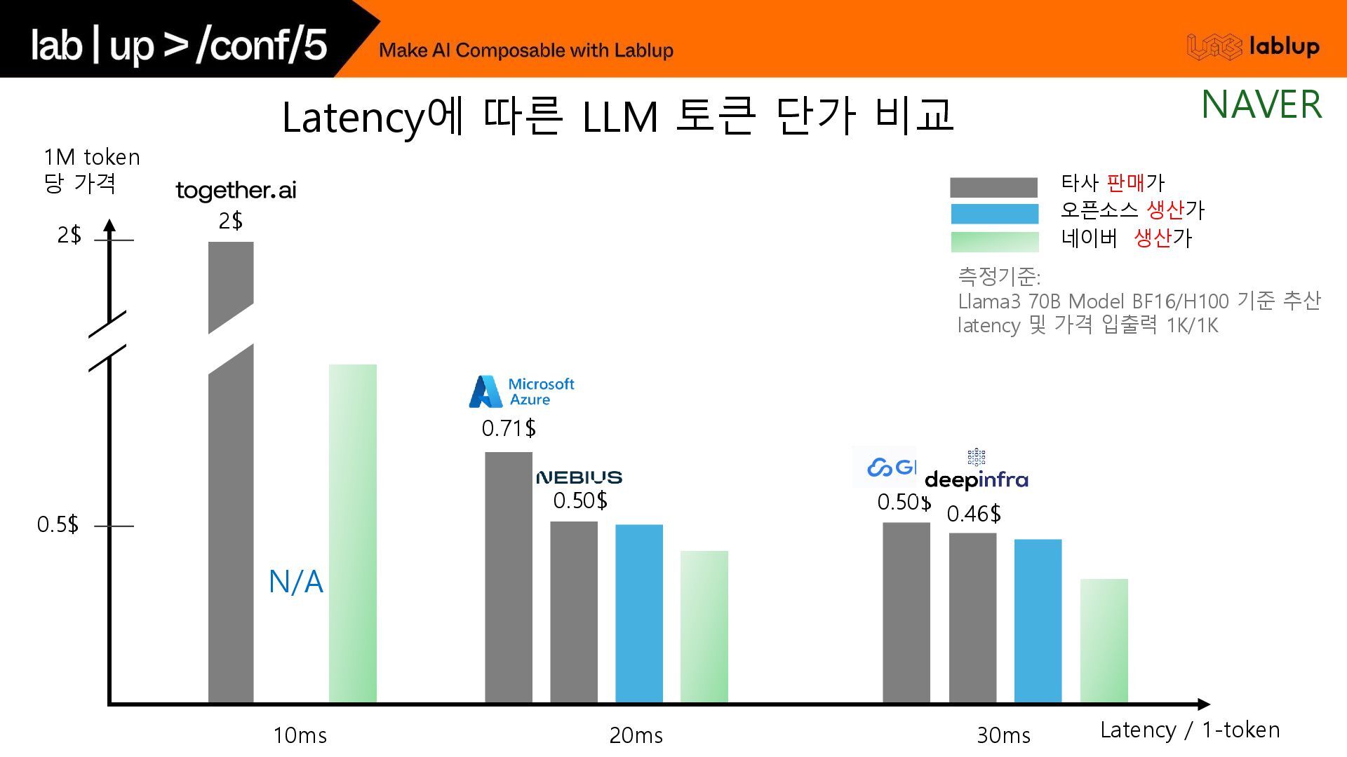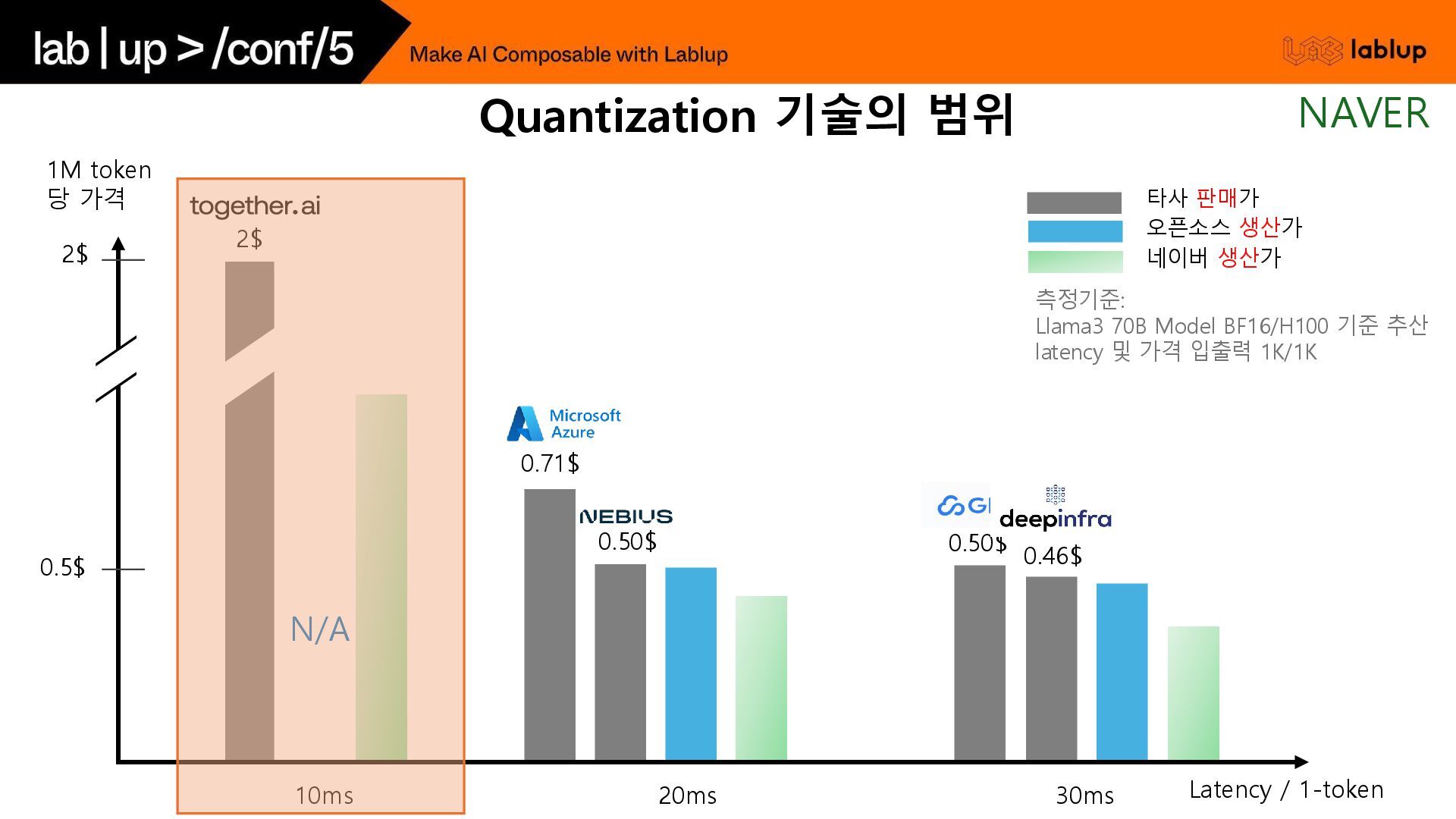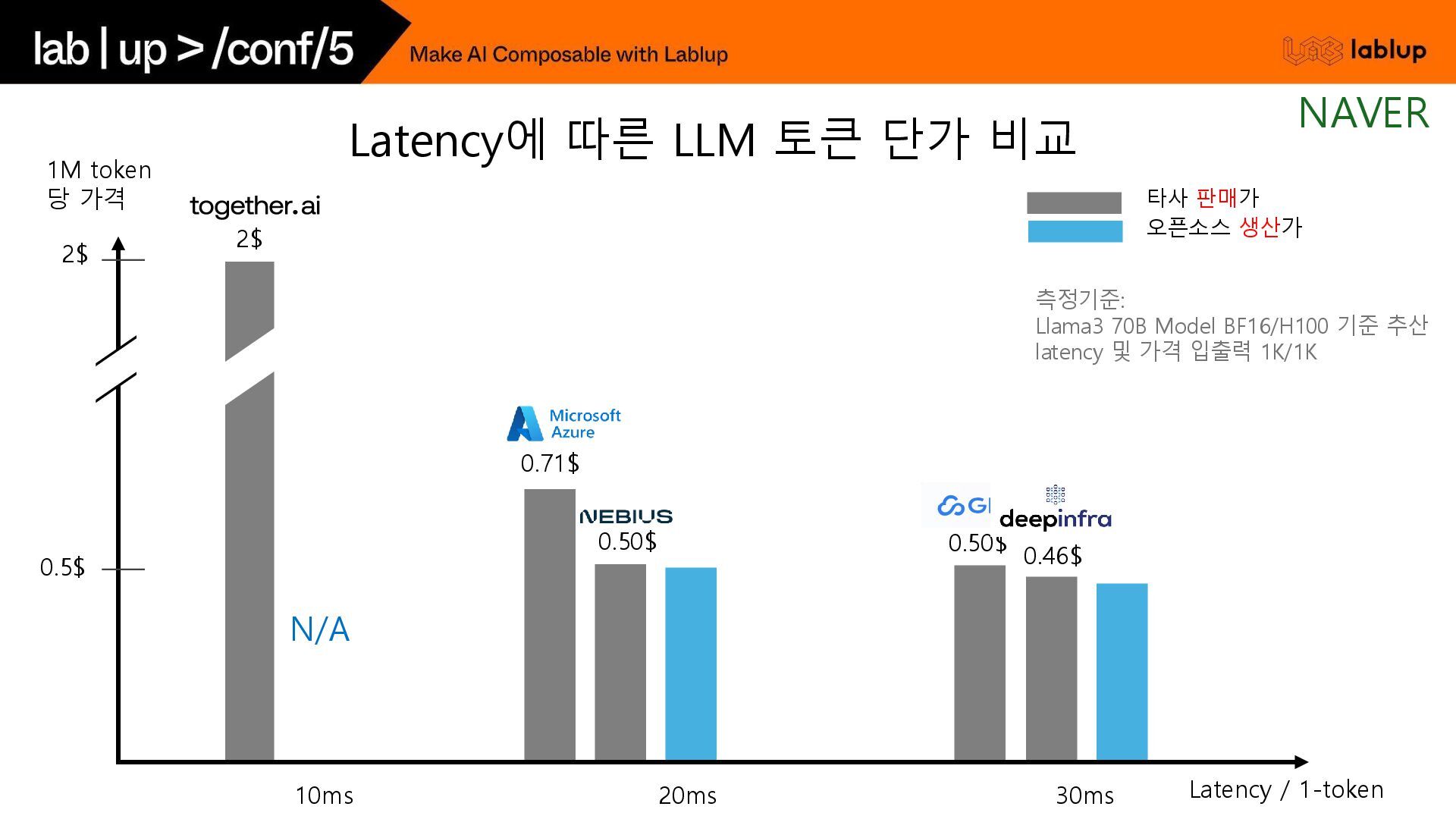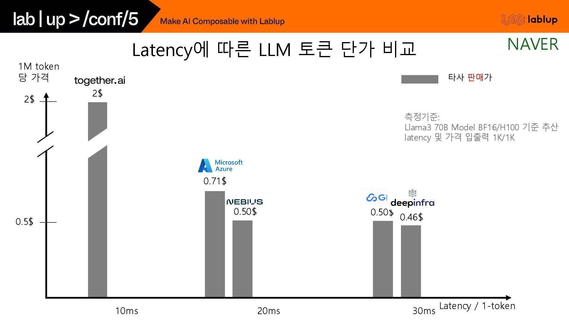 재연산하지 않고 KV load하여 연산시간을 줄임. - 연산을 생략하는 만큼 Prefill 비용감소 (~30%) 오늘 날씨 흐림 Time (2) 채팅 사용자 언제까지? 5시 오늘 날씨 흐림 언제까지? 5시 오늘 날씨 흐림 우산? yes 연산 생략 (KV Load) 사용자 입력 (Prefill) GPT 출력 (Decode) GPT는 욕을 하지 않는다. 오늘 날씨 알려줘. 흐림 GPT는 욕을 하지 않는다. Time (1) 중복 사용되는 시스템 프롬프트 사용자 입력 (Prefill) GPT 출력 (Decode) 음식점 추천해줘. 고깃집 연산 생략 (KV Load) Prefix Caching NAVER
