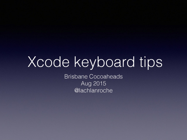 Xcode keyboard tips Brisbane Cocoaheads Aug 2015 @lachlanroche