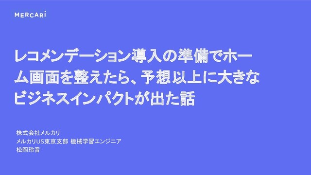 Machine Learning Pitch「今期の私は凄かったぞ!!!」 @ 2021/3/31 メルカリUSでのHome画面改善の取り組みと、それによるビジネスインパクトの話をしました。