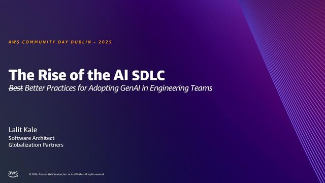 rights reserved. Organizational Context Pyramid In Practice Generated Artifacts • Output Layer (SDKs, Tests, Docs, Runbooks,) => Auto- generated always in sync with specs Intelligence Layer • AI Reasoning Layer (AWS Bedrock KG + Retrieval , Claude, Agents, Orchestration)→ Interprets context , enforces standards, generate artifacts Specifications Foundation • Context Layer (OpenAPI Specs, AsyncAPI, Event Schemas, ADRs, RFCs, Design Patterns, team topologies, risks catalogue) → Machine readable organizational knowledge Context is dynamic and fluid Automation AWS serverless for process orchestration Integration Points Tools for seamless workflow integration Agent Layer Claude with specialized sub-agents (AWS Bedrock) Retrieval Layer Semantic search for relevant context Context Store Versioned organizational knowledge repository (AWS S3)