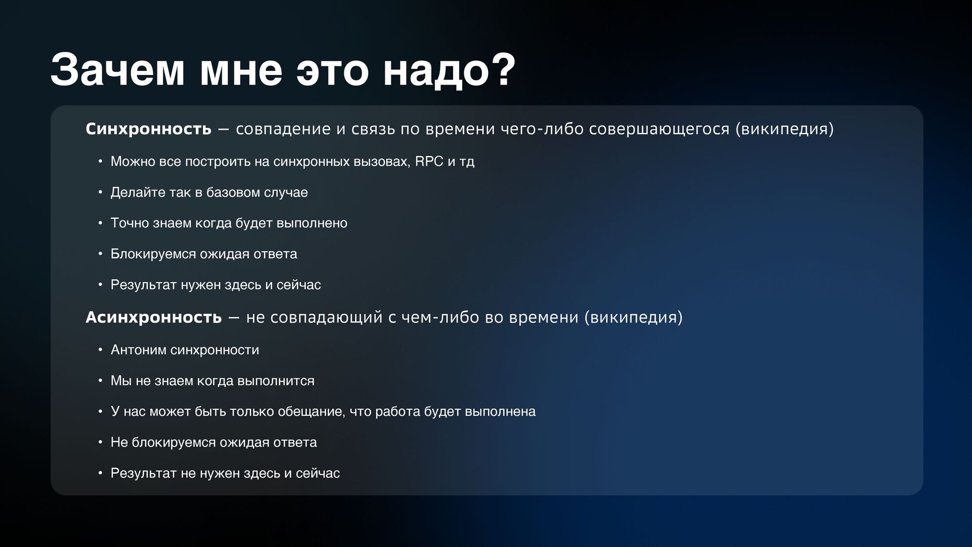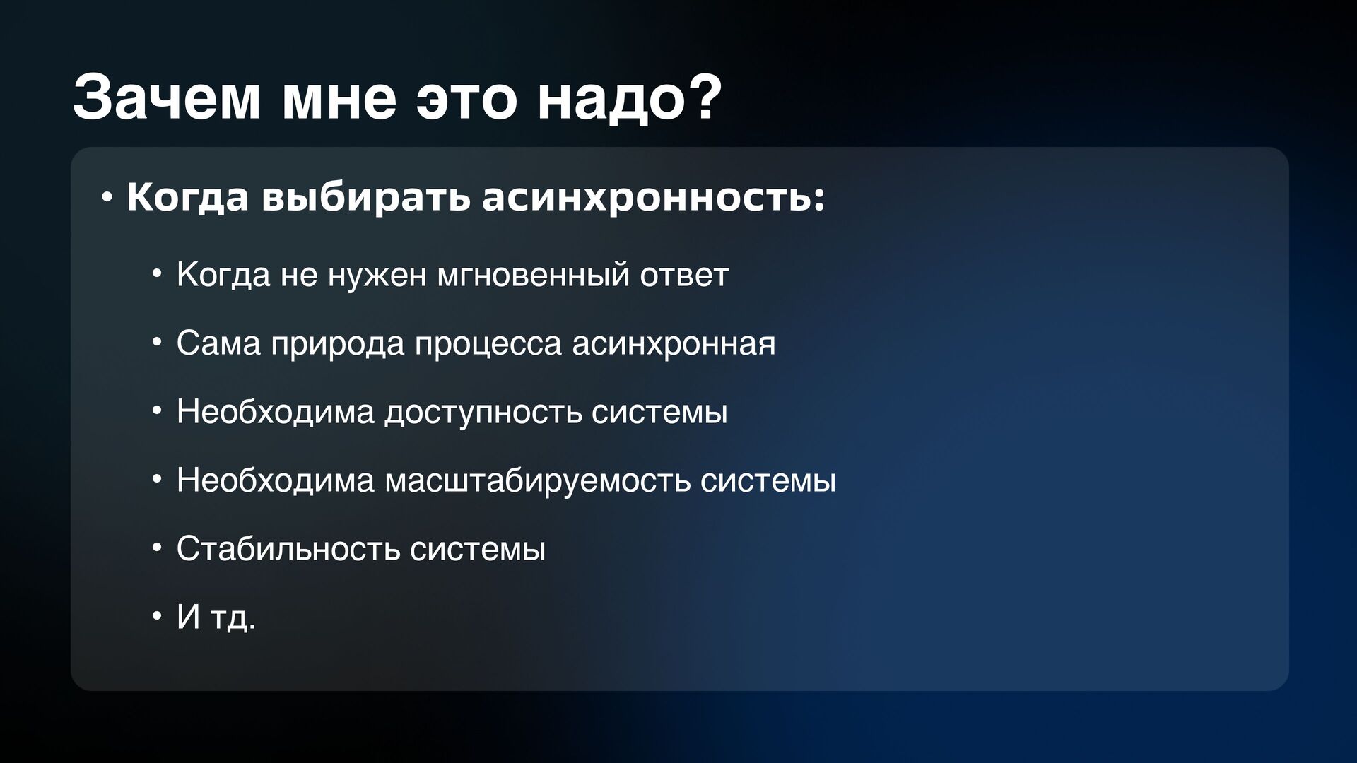 Простой мир синхронных вызовов рано или поздно заканчивается. Сначала появляется очередь. Потом — очередь для очереди. Потом — типы сообщений, форматы, порядок, idempotency, и вся эта «архитектура». Сначала ты просто пишешь сервис. Потом ты отвечаешь за то, чтобы сообщения не терялись.