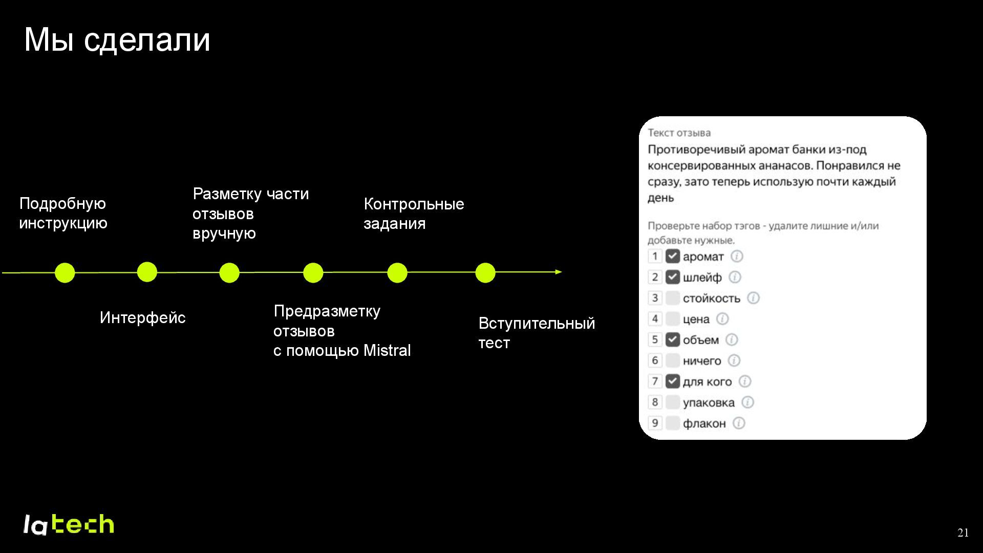 Осенью прошлого года в Lamoda Tech появилась задача разделять отзывы клиентов по осмысленным категориям (тегам). Перед нами стоял вызов: получить большие объёмы качественно размеченных данных для обучения нейросети, не имея готовых решений и аналогов на рынке. Я расскажу о полном цикле создания подобного решения, уделив особое внимание следующим пунктам:
