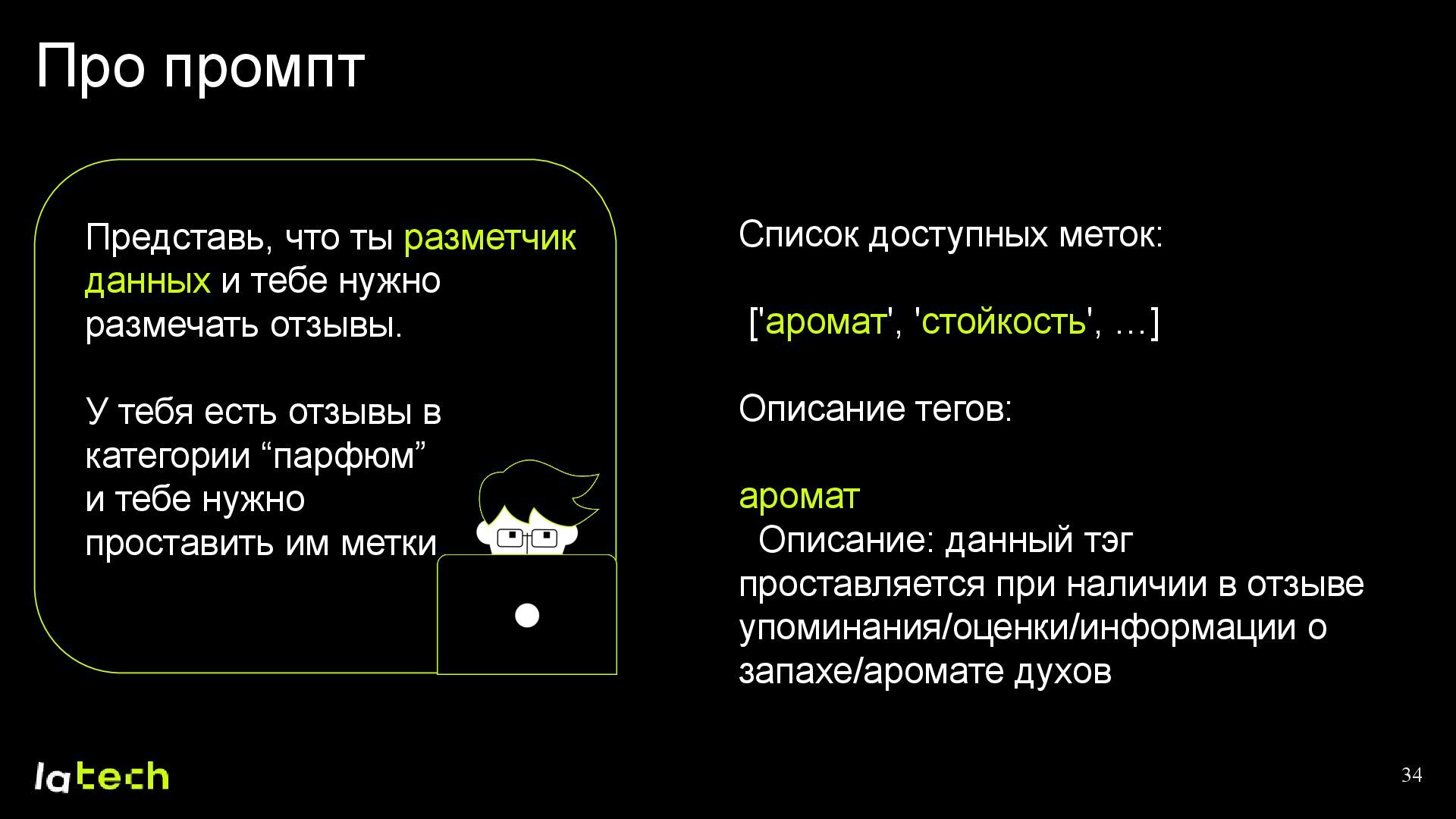Этот доклад будет интересен всем, кто работает с NLP, построением DS-пайплайнов, применением LLM и решает задачи разметки больших массивов пользовательских текстов.