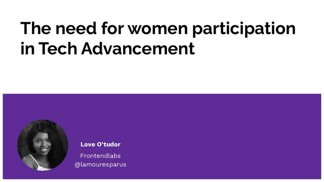 The need for women participation in Tech Advancement Love O’tudor