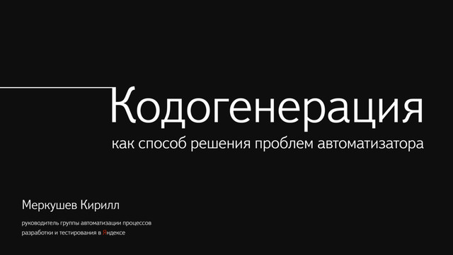 Кодогенерация Меркушев Кирилл как способ решения проблем автоматизатора руководитель группы