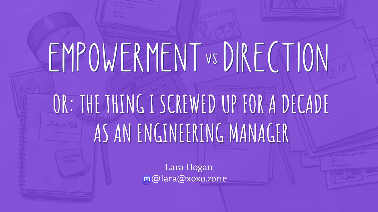 It’s critical to be transparent about what you expect of your teammates, and what they can expect of you. In this talk, Lara Hogan talks about how to balance being empowering and being directive as a leader, and how to know when to switch up your approach. She covers: