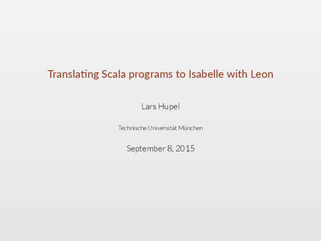 1. Transla ng Scala programs to Isabelle with Leon Lars Hupel