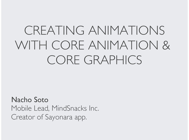 CREATING ANIMATIONS WITH CORE ANIMATION & CORE GRAPHICS Mobile Lead,
