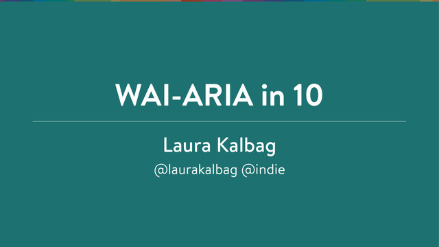 WAI-ARIA in 10 Laura Kalbag @laurakalbag @indie
