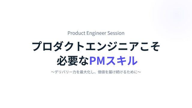 プロダクトエンジニアこそ必要なPMスキル 〜デリバリー力を最大化し、価値を届け続けるために〜