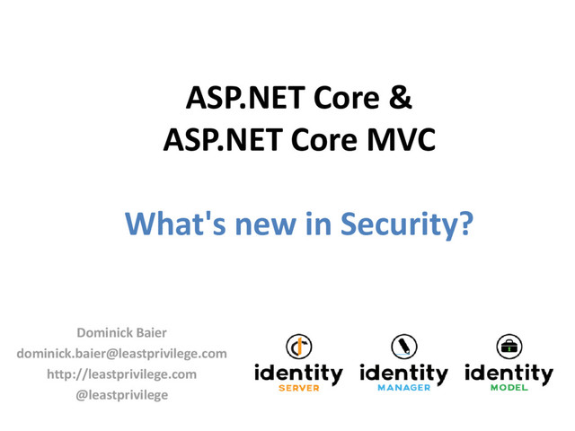 Twitter, Facebook, Microsoft Account – OpenID Connect & JSON Web Tokens • New generic OAuth 2.0 middleware makes on-boarding other proprietary providers easier – LinkedIn, Slack, Spotify, WordPress, Yahoo, Github, Instragram, BattleNet, Dropbox, Paypal, Vimeo… https://github.com/aspnet-contrib/AspNet.Security.OAuth.Providers