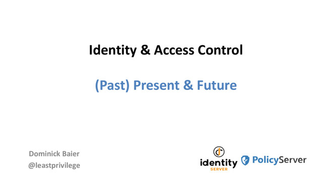 Security Architectures – Working with Software Development Teams (ISVs and in-house) • Creator and Maintainer of IdentityServer OSS Project – Certified OpenID Connect & OAuth 2.0 Implementation for .NET – https://identityserver.io email [email protected] blog http://leastprivilege.com twitter @leastprivilege slides https://speakerdeck.com/leastprivilege