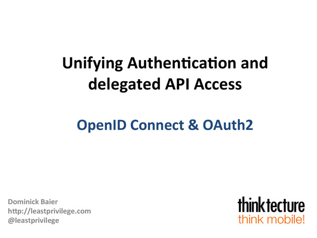 at  thinktecture   •  Focus  on   –  security  in  distributed  applica9ons   –  iden9ty  management   –  access  control   –  Windows/.NET  security   –  mobile  app  security     •  MicrosoI  MVP  for  Developer  Security   •  ASP.NET  Web  API  Advisor   •  [email protected]   •  h@p://leastprivilege.com   think mobile!