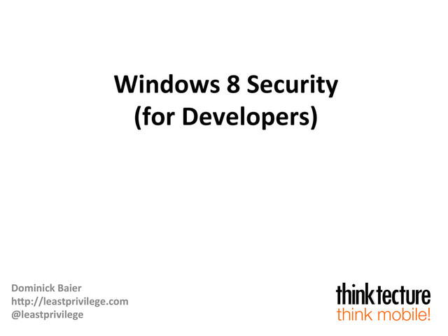 1. Windows  8  Security   (for  Developers)   Dominick  Baier