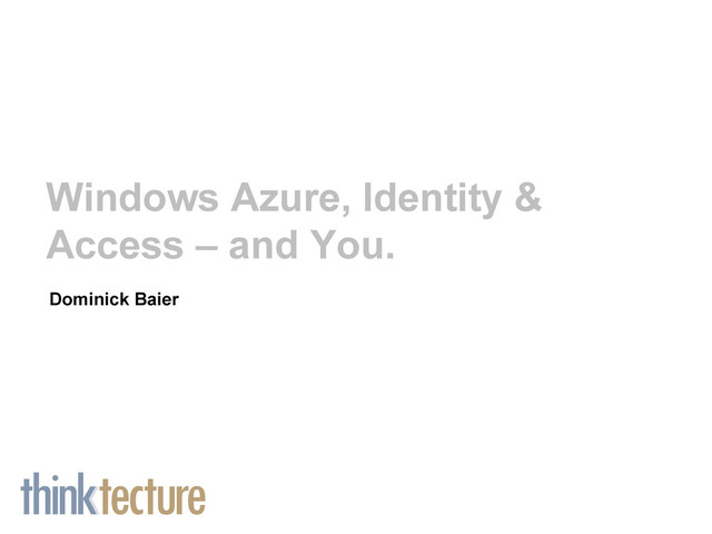 implementing identity & access control for Azure-based applications – for common scenarios • Make use of the Microsoft tool & technology stack – .NET Framework (ASP.NET & WCF) – Windows Server & Windows Azure – Active Directory & Active Directory Federation Services – Access Control Service – Windows Azure Active Directory – Windows 8