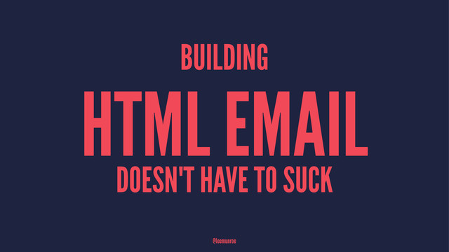 Building HTML email sucks. Tables. Inline CSS. 30+ clients to support. We now have lots of cool front-end dev tools that can make our lives easier. Know the quirks of the major email clients, build a modular design system and automate your workflow with Grunt to make your life 100x easier.