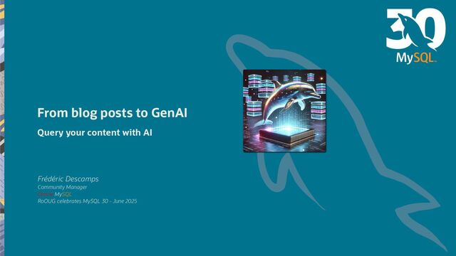 In this session, we will examine how to add value to existing data stored in MySQL by utilizing our data context for RAG.