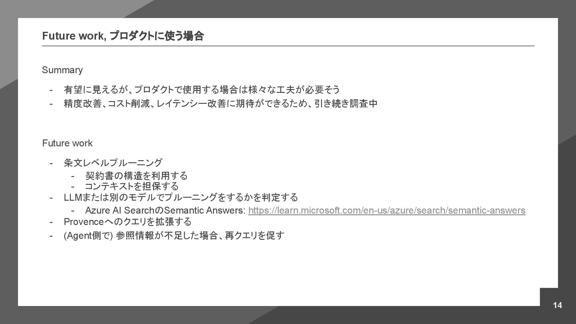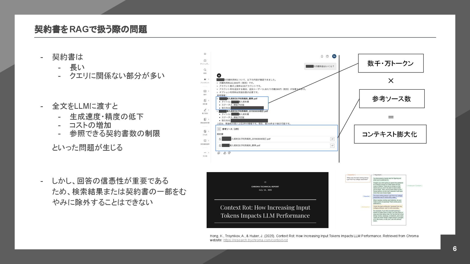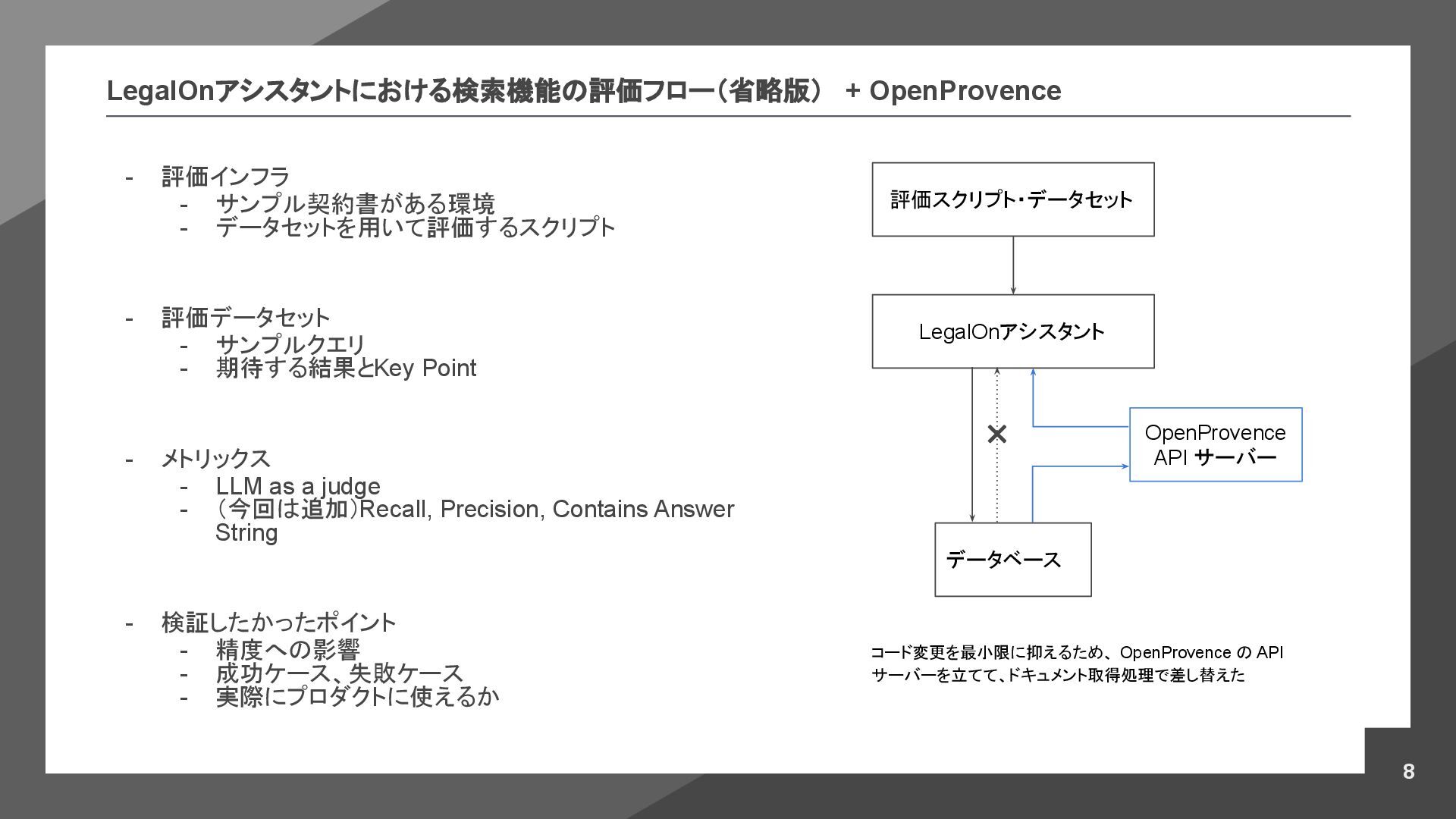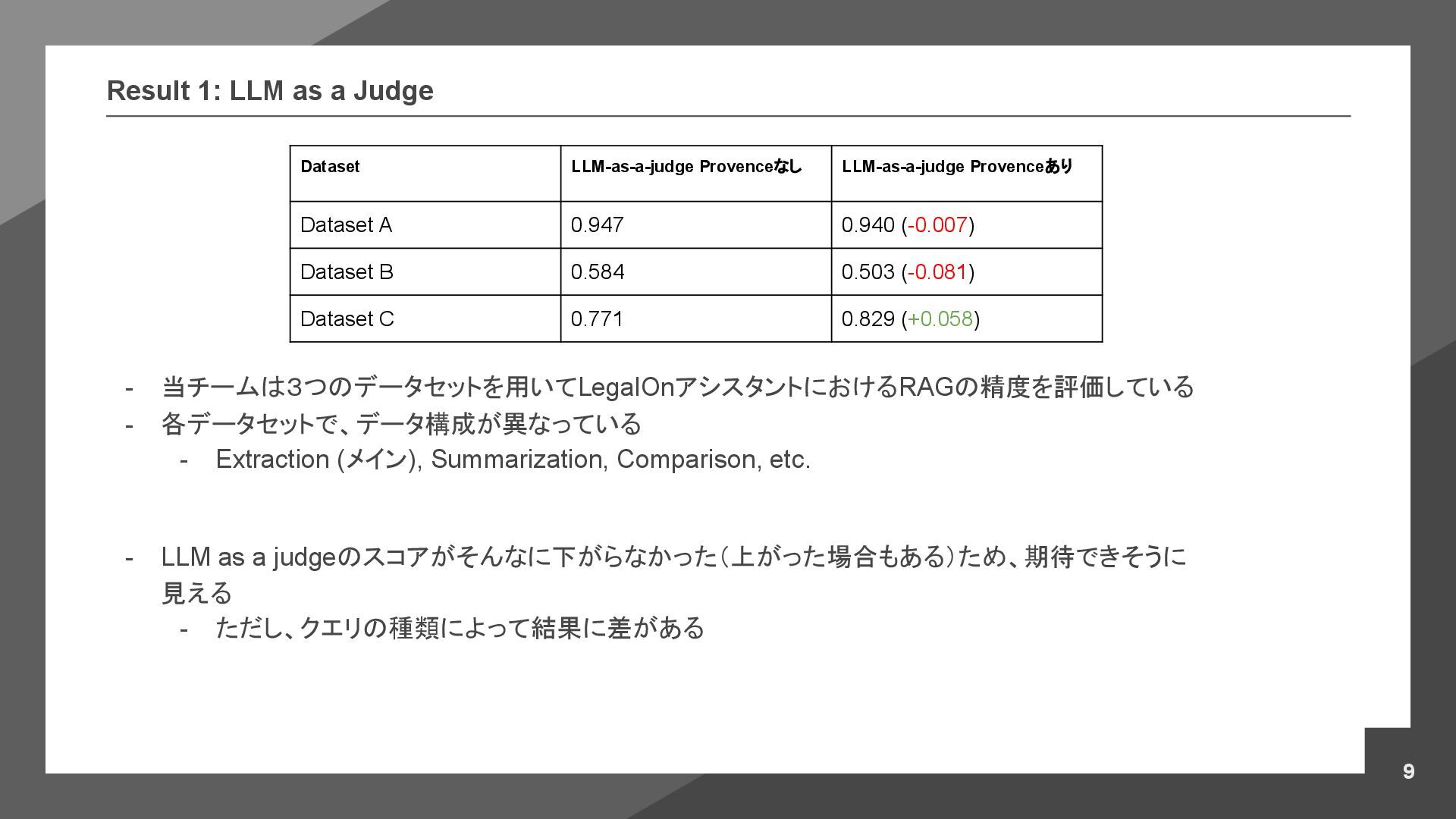 Idea - Question と Context を入力すると、Cross Encoder によ り不要文を削除した短縮版 Context が 生成され、reranker score も取得できる。 - OpenProvence - 舘野 祐一 (@hotchpotch) さんによる日英版の再現 - オープンソース Provence / OpenProvence https://speakerdeck.com/hotchpotch/openprovence-kueriniguan-lian-sinaiwen-zhang-xue-chu-moderuri-ben-yu- ban-nozuo-cheng-togong-kai https://arxiv.org/abs/2501.16214 Chirkova, N., Formal, T., Nikoulina, V., & Clinchant, S. (2025). Provence: efficient and robust context pruning for retrieval-augmented generation. ArXiv, abs/2501.16214.