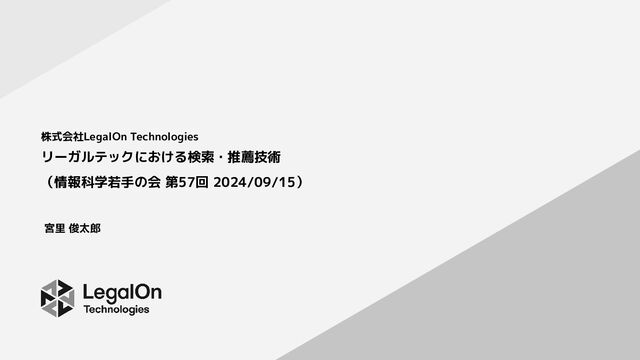 宮里 俊太郎 リーガルテックにおける検索・推薦技術 (情報科学若手の会 第57回 2024/09/15) 株式会社LegalOn Technologies