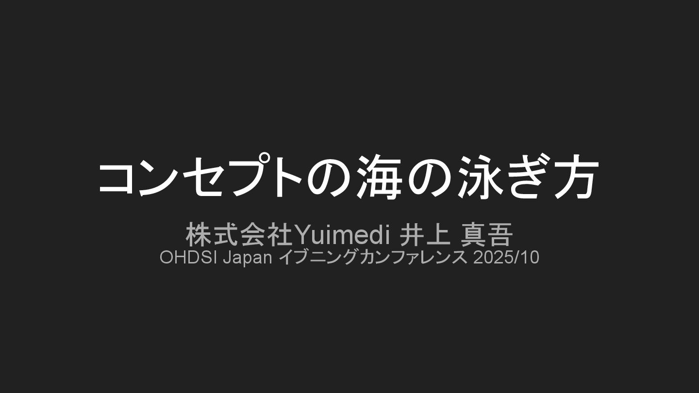 株式会社Yuimedi 井上 真吾 OHDSI Japan イブニングカンファレンス 2025/10 コンセプトの海の泳ぎ方