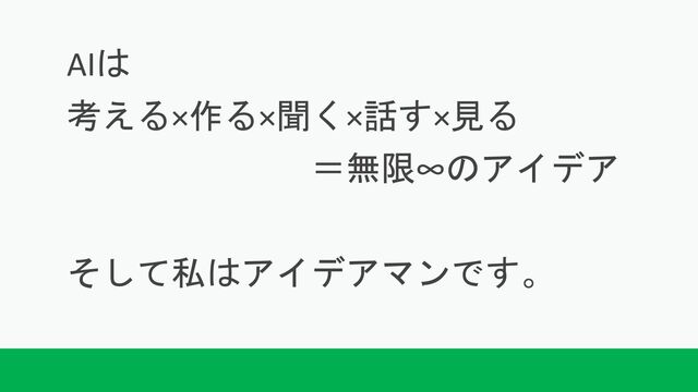 AIは 考える×作る×聞く×話す×見る =無限∞のアイデア そして私はアイデアマンです。