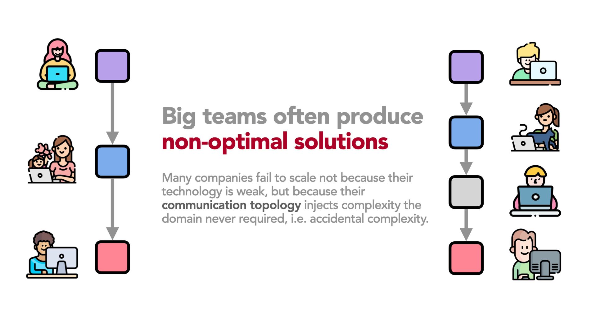 By the end of the session, attendees will understand how organizational design shapes every line of code, why many scaling attempts fail, and which principles can help teams build simpler architectures, healthier communication structures, and more resilient products in complex domains.