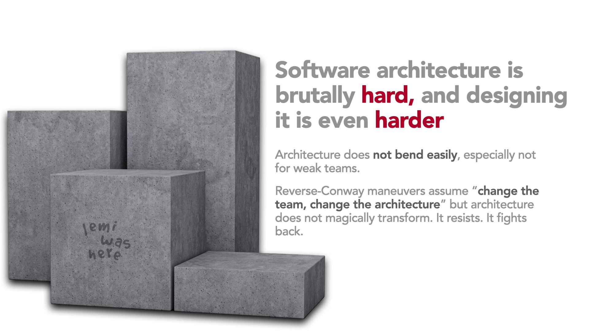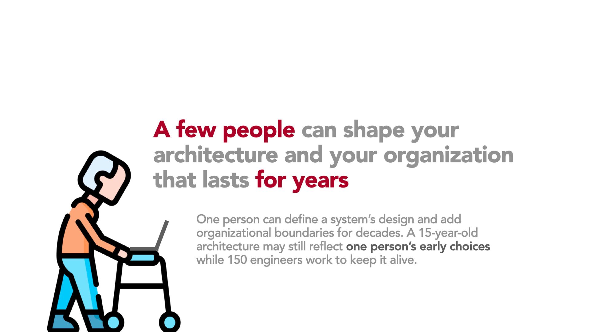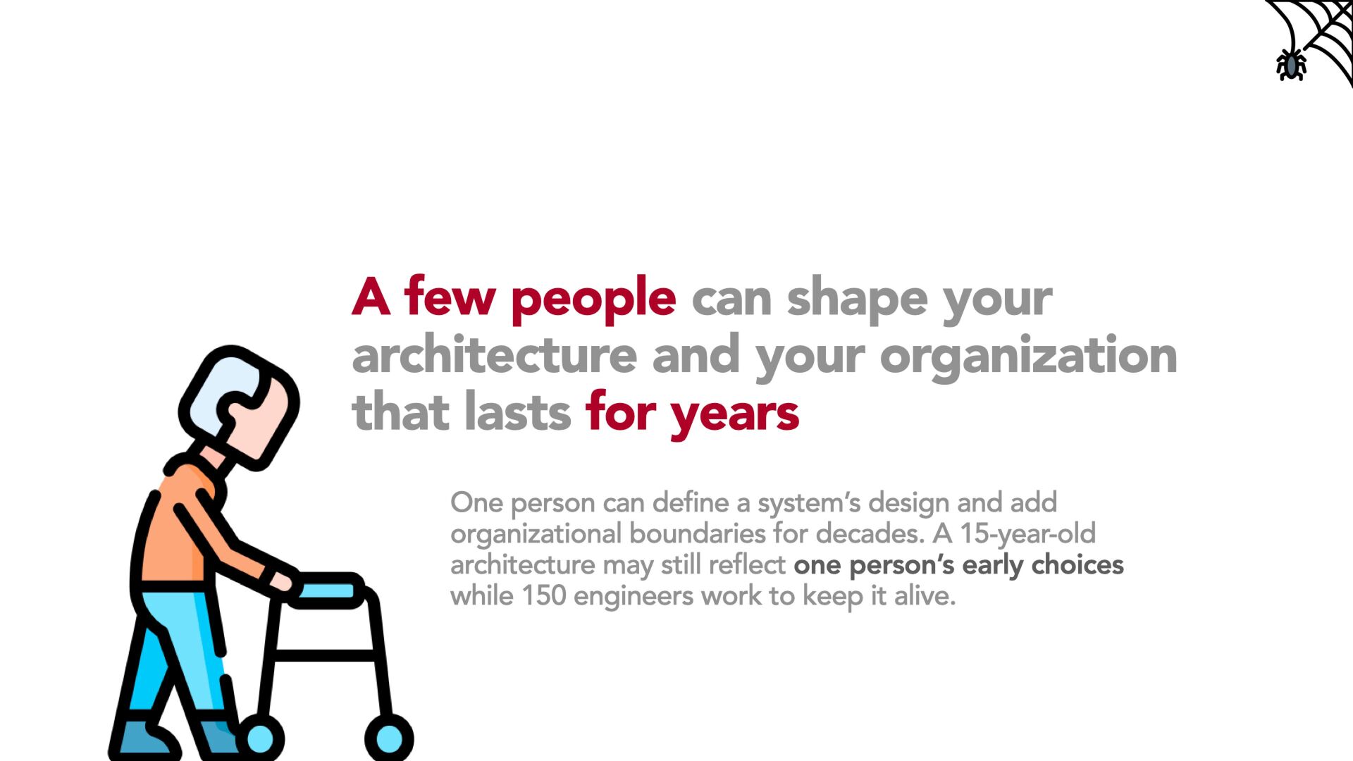 Using concrete examples from scaling engineering teams, we will look at why large teams slow down, how microservices often magnify organizational weaknesses, and why legacy architectures often outlive the people who designed them. We will break down the feedback loop between architecture, team topology, and communication culture and explain why you cannot meaningfully change one without changing the others.
