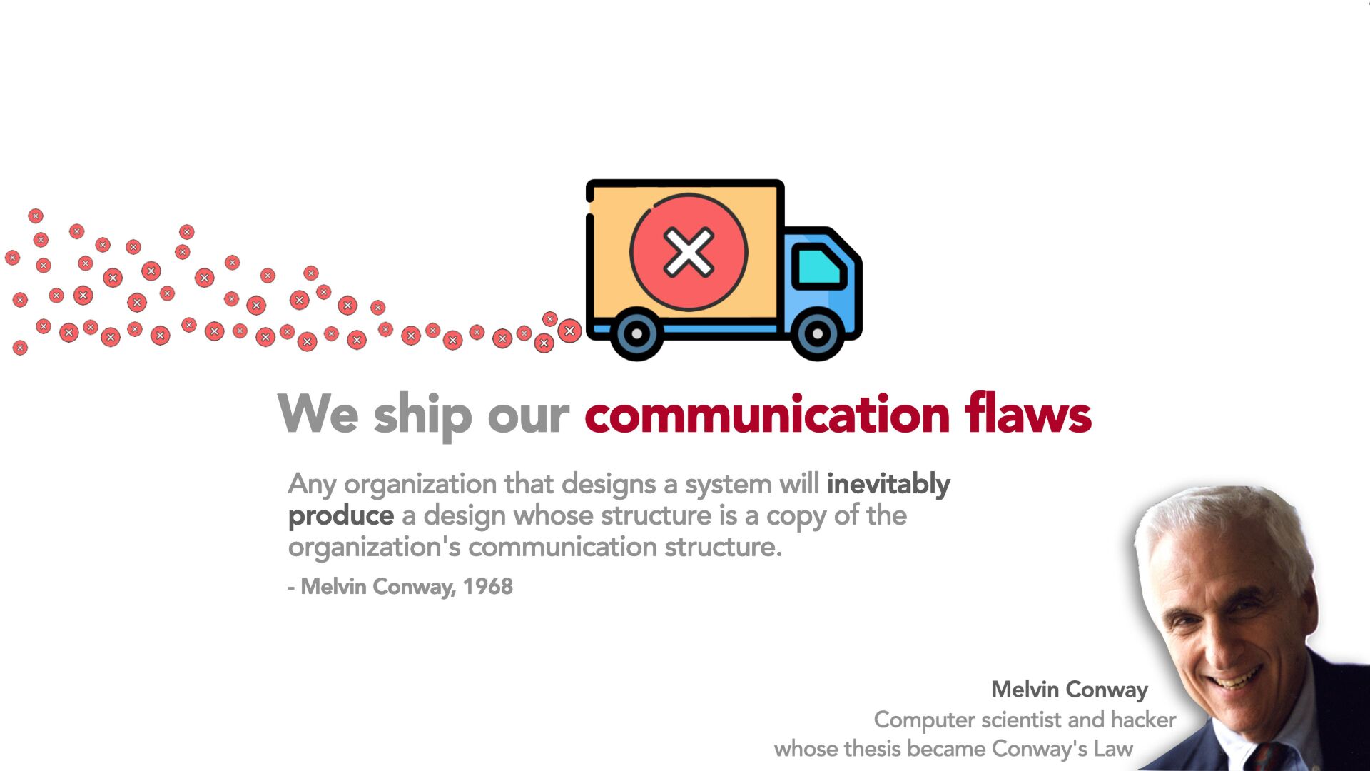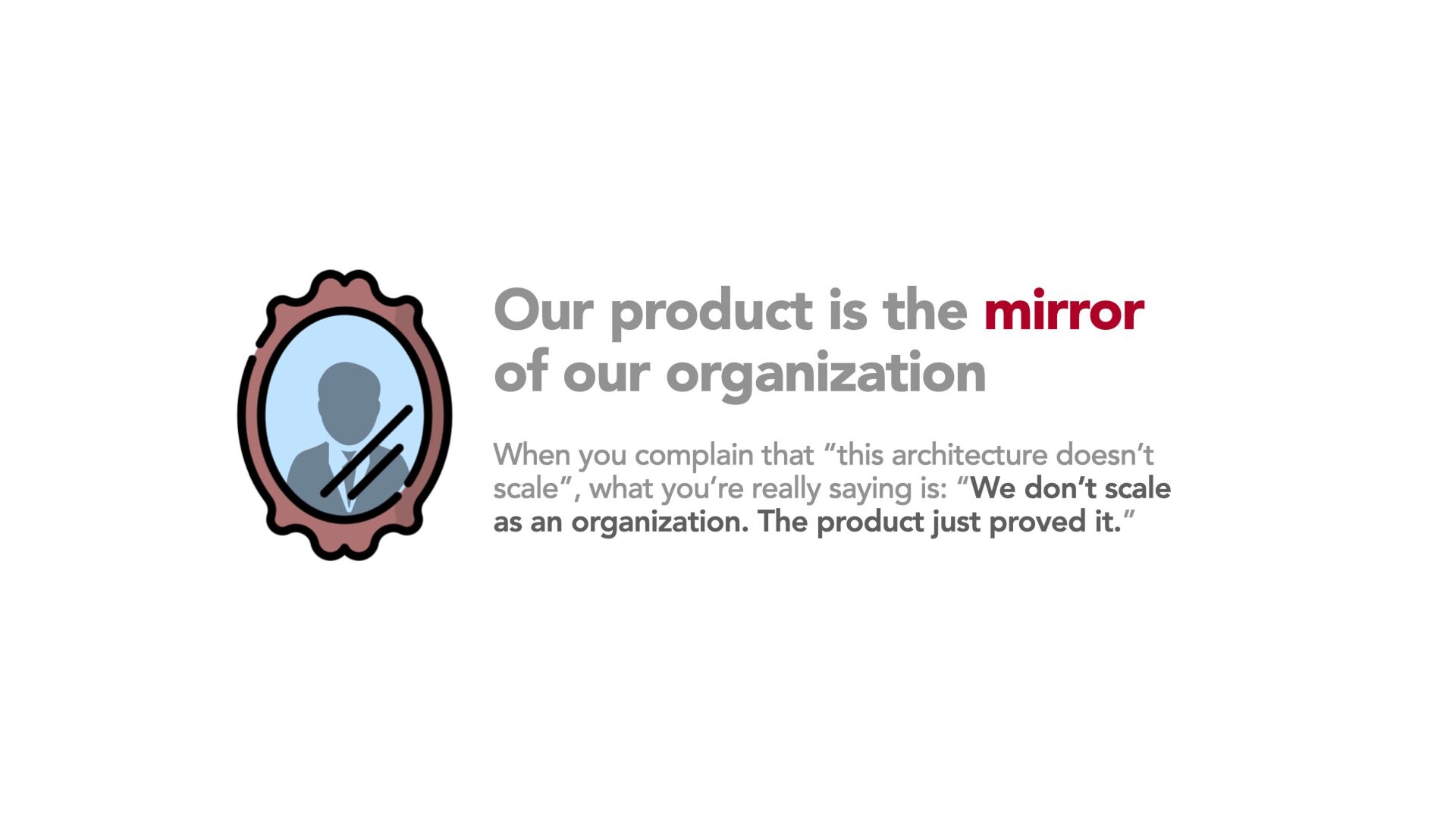 Every software system is a mirror, reflecting not only our architectural choices, but also the invisible communication patterns, organizational structures, and human limitations that underlie them. In this talk, we explore why products often fail not because of technology but because we ship our communication flaws. Drawing on Conway's Law and real-world organizational dynamics, we will examine how complexity creeps in through team boundaries, misalignment, bureaucracy, and the natural cognitive limits of how many relationships people can manage.