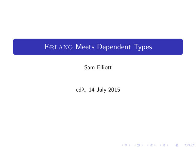 • Dynamically Typed • dialyzer • OTP: Behaviours Sam Elliott Erlang Meets Dependent Types