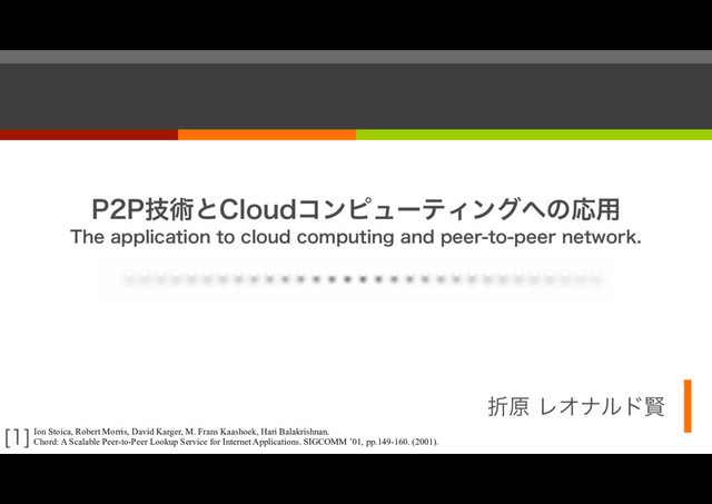 P2P技術とCloudコンピューティングへの応用 折原 レオナルド賢 The application to cloud computing and peer-to-peer