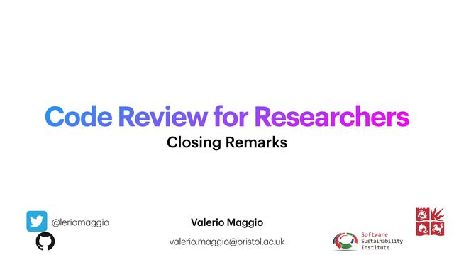 Closing Remarks Presentation of the "Code Review Workshop for Researchers" held online on 10th February 2022