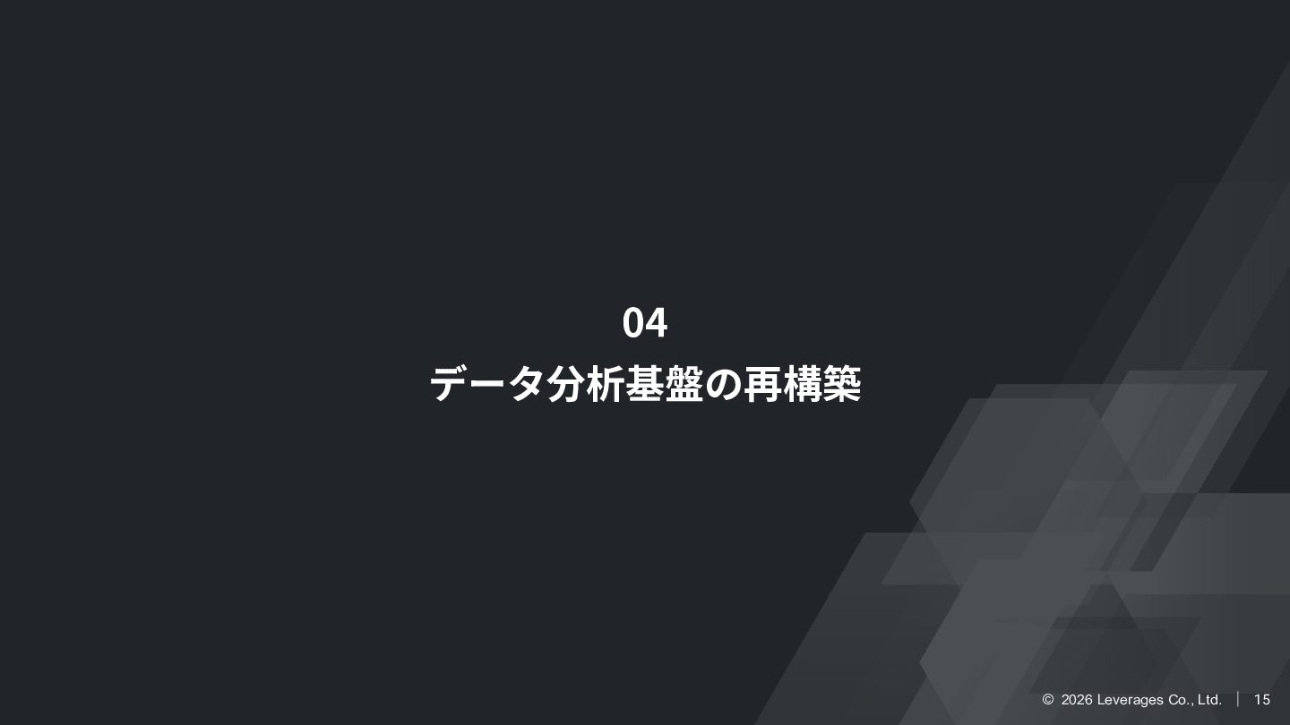 15 © 2026 Leverages Co., Ltd. データ分析基盤の再構築 04