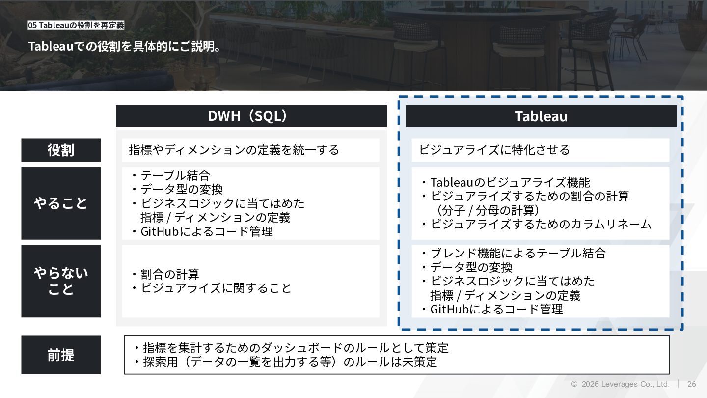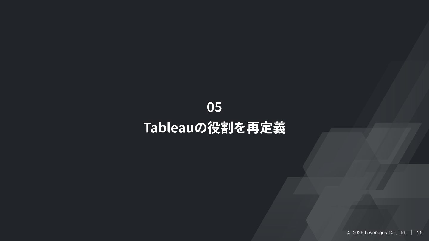 25 © 2026 Leverages Co., Ltd. Tableauの役割を再定義 05