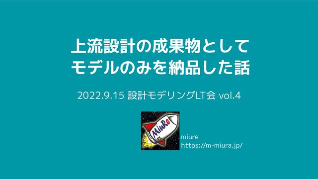 上流設計の成果物として モデルのみを納品した話 2022.9.15 設計モデリングLT会 vol.4 miure https://m-miura.jp/
