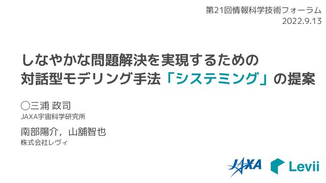 • 制御理論や待ち行列理論などの工学的設計問題なと クラスII :不完全環境情報問題 • 目的に関する情報は既知であるが、環境に関する情報は観測・予測できず、 問題を完全には記述できない。 • 社会を含めた環境に適応しての解探索が中心課題になる。 クラスIII:不完全目的情報問題 • 周囲環境(制約条件)ばかりでなく、目的に関する情報も観測者には予測で きず、問題を完全に記述できない。 • 目的を決めることと、問題の解の探索が同時に行われる。 出典:井上 雅裕, 陳 新開, 長谷川 浩志「システム工学—問題発見・解決の方法」 システム工学が扱う問題が変化している ここが様々な場面で 増えてきている ⇨クラスⅢ問題が 普遍化してきている