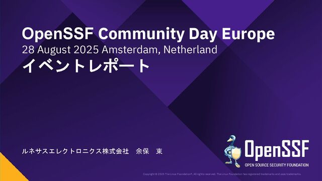 of Staff, OpenSSF) ◦ 過去1年のOpenSSF活動および成果の概要紹介 CRA関連の活動を行ってきた。今後もCRAに取り組む。 成果:リサーチペーパーや教育プログラム ・Report: Unaware and Uncertain: The Stark Realities of Cyber Resilience Act Readiness in Open Source ・Education: Understanding the EU Cyber Resilience Act (CRA) (LFEL1001) 本セッションの動画リンクはこちら 5