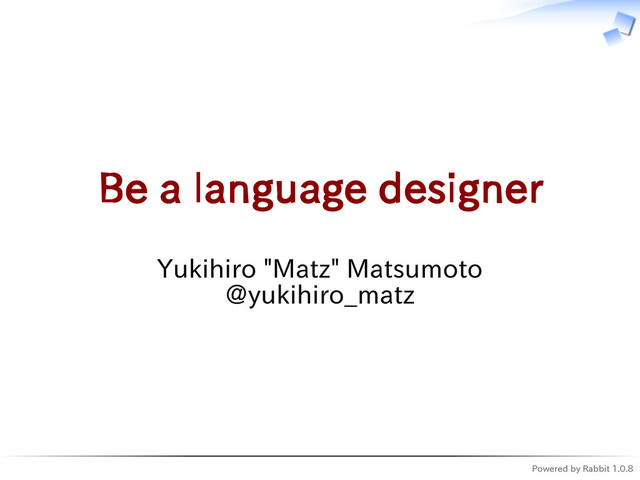 Powered by Rabbit 1.0.8 We will release Ruby 2.0