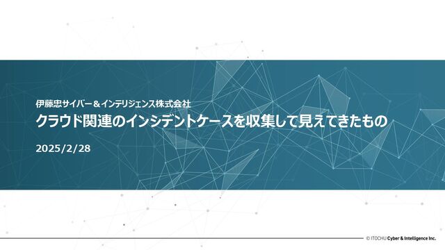 1 伊藤忠サイバー&インテリジェンス株式会社 クラウド関連のインシデントケースを収集して見えてきたもの 2025/2/28
