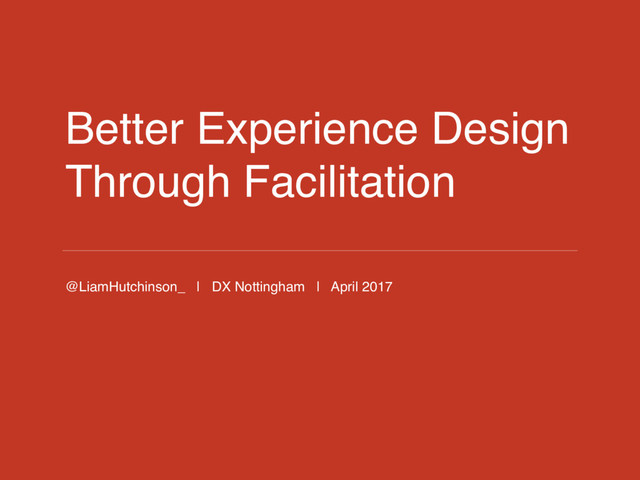 Slides from Design Exchange Nottingham, talking about Better Experience Design Through Design Facilitation.