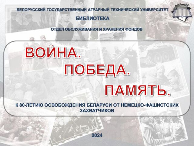 Великой Отечественной войны = Guerilla Belarus. Illustrated Encyclopedia of the partisan moverment in Belarus during the Great Patriotic War / [редкол.: В. В. Андриевич (гл. ред.) и др. ; под общ. ред. А. М. Литвина]. - Минск : Беларуская Энцыклапедыя імя П. Броўкі, 2019. - 352 c. Книга наглядно показывает героику партизанской борьбы, а также партизанские будни, жизнь и быт партизан. Авторские тексты, иллюстрации, архивные документы, музейные экспонаты и экспозиции, памятники и мемориалы раскрывают историю развития партизанского движения в Беларуси и одновременно показывают, как жили простые люди в этот сложный период, как действовали партизанские лагеря, госпитали, школы, мастерские, как жили и сражались целые партизанские зоны.