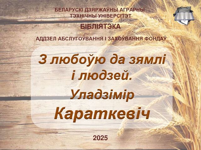 1. БЕЛАРУСКІ ДЗЯРЖАЎНЫ АГРАРНЫ ТЭХНІЧНЫ УНІВЕРСІТЭТ БІБЛІЯТЭКА З любоўю да зямлі
