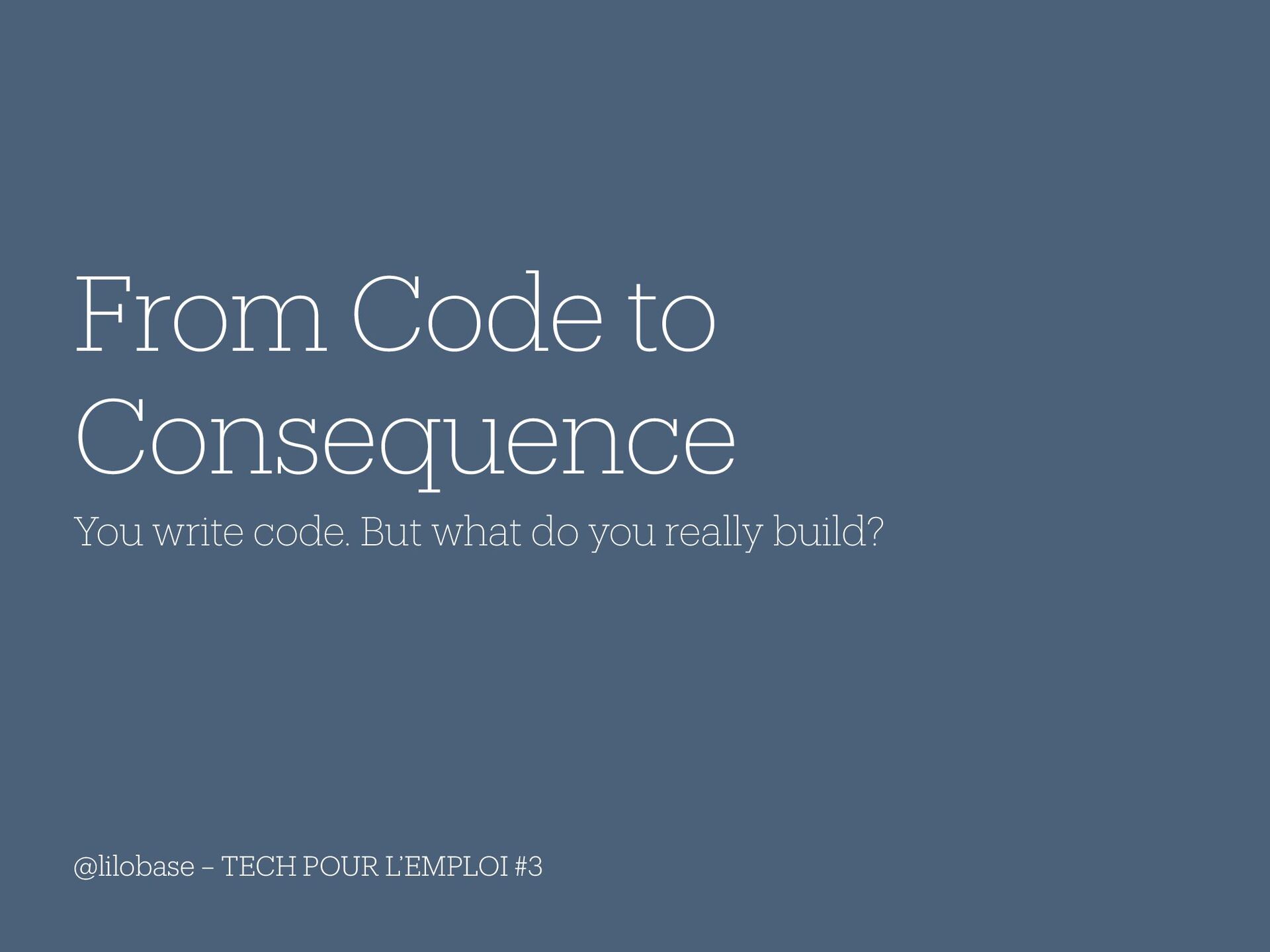 1. @lilobase – TECH POUR L’EMPLOI #3 From Code to Consequence