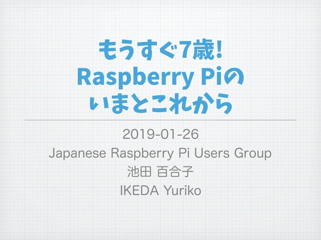 もうすぐ7歳! Raspberry Piの いまとこれから +BQBOFTF3BTQCFSSZ1J6TFST(SPVQ ాඦ߹ࢠ *,&%":VSJLP