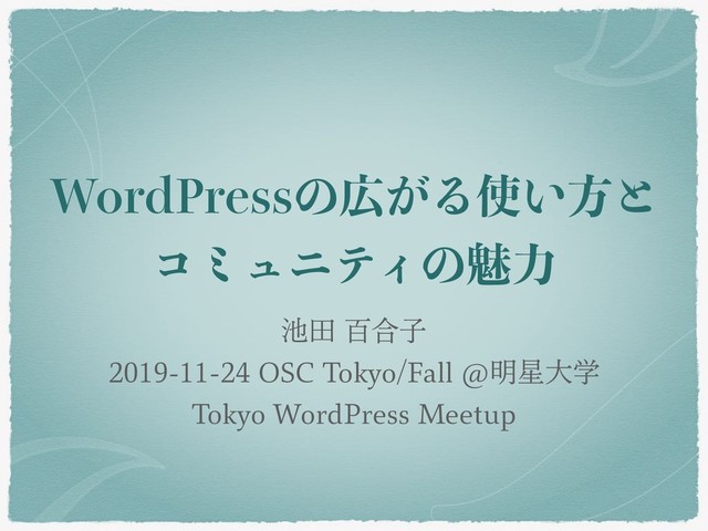 8PSE1SFTTͷ͕Δ͍ํͱ ίϛϡχςΟͷັྗ ాඦ߹ࢠ 04$5PLZP'BMM!໌େֶ 5PLZP8PSE1SFTT.FFUVQ