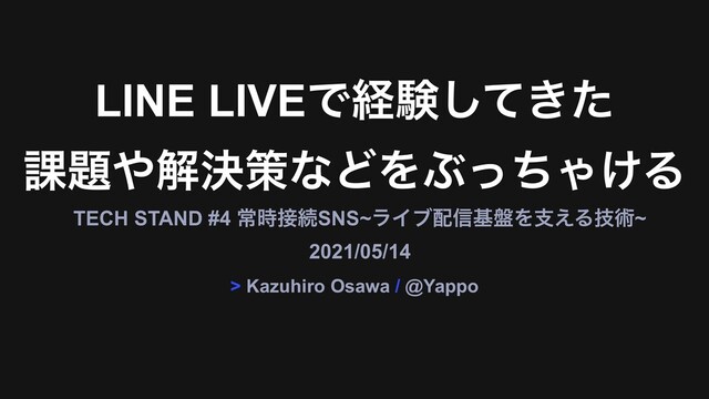 「LINE LIVEで経験してきた課題や解決策などをぶっちゃける」 LINE株式会社 開発3センター サービス開発1室 室長 大沢和宏 (@Yappo : https://twitter.com/Yappo )