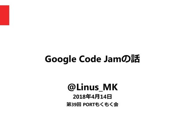 Google Code Jamの話 @Linus_MK 2018年4月14日 第39回 PORTもくもく会