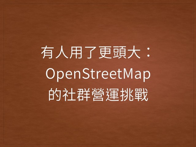 有⼈⽤了更頭⼤: OpenStreetMap 的社群營運挑戰